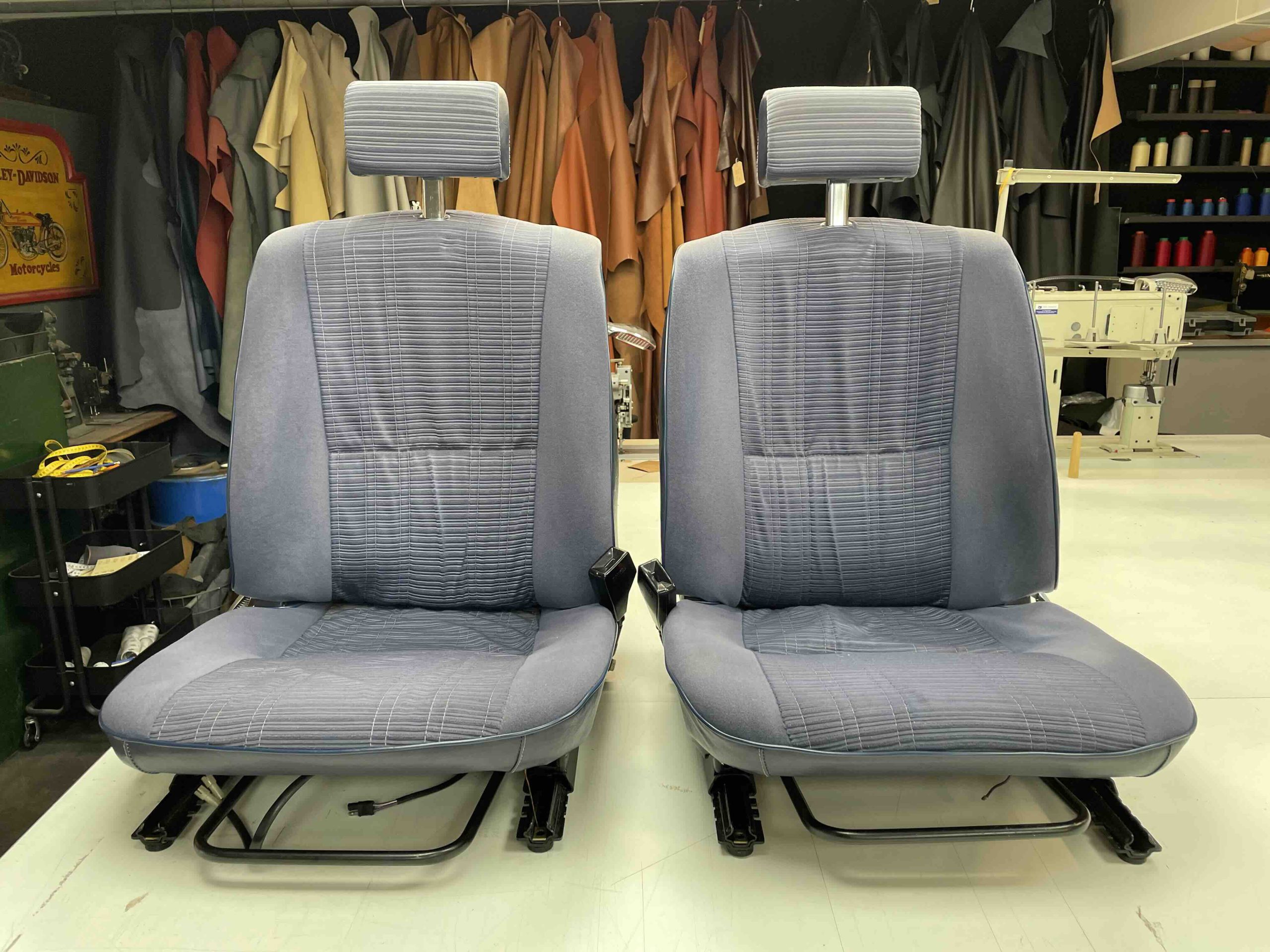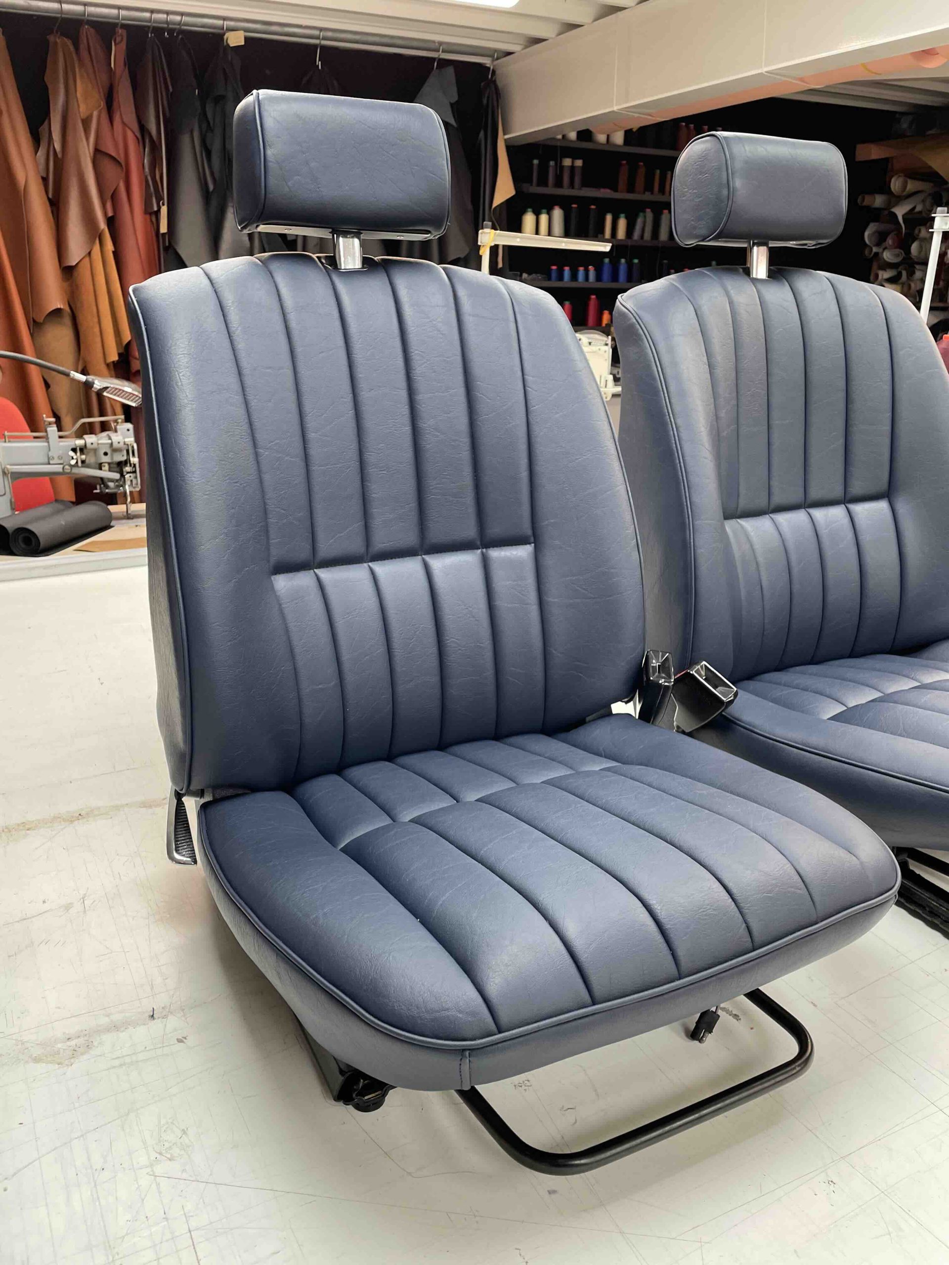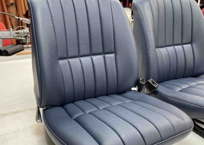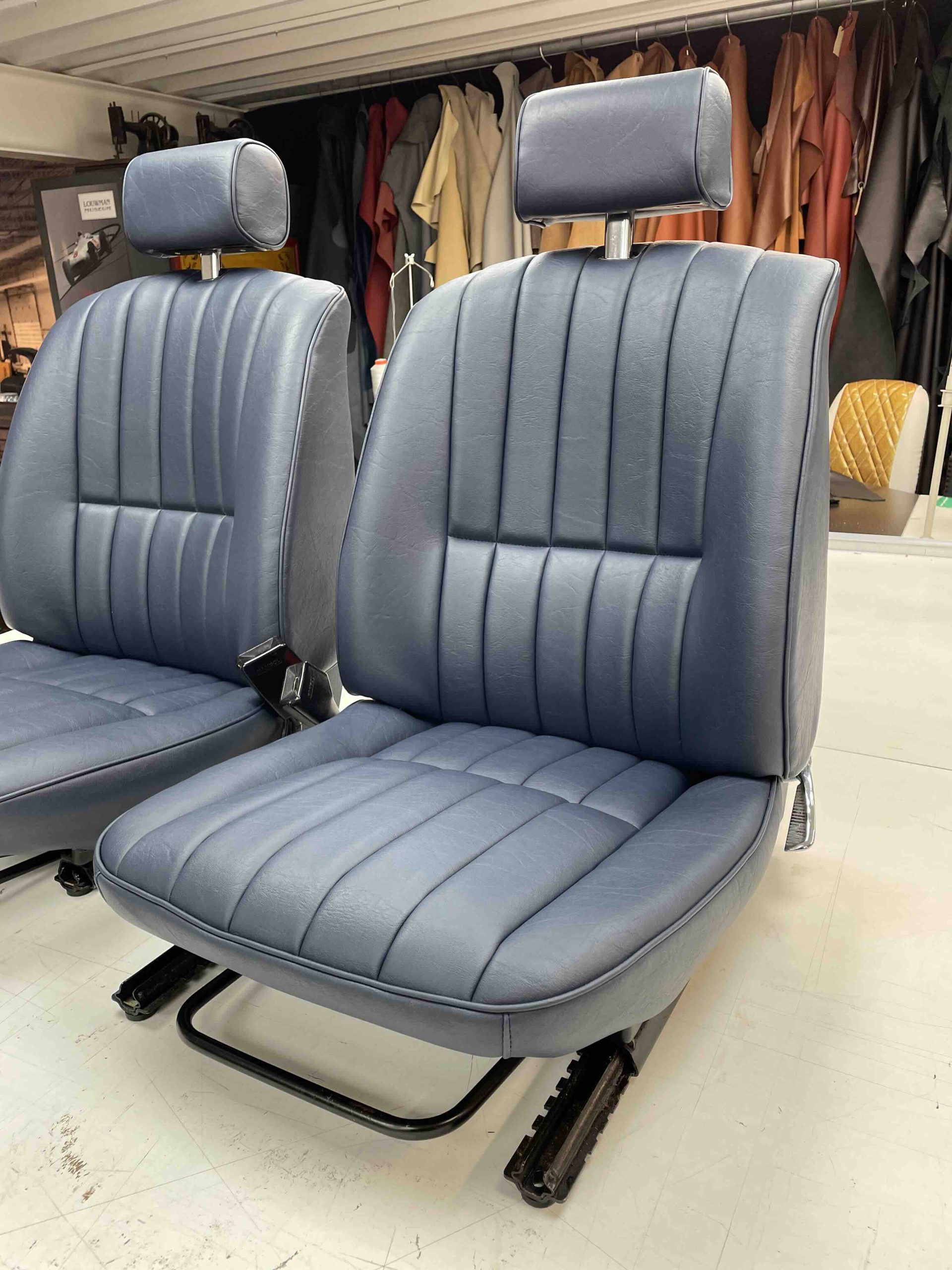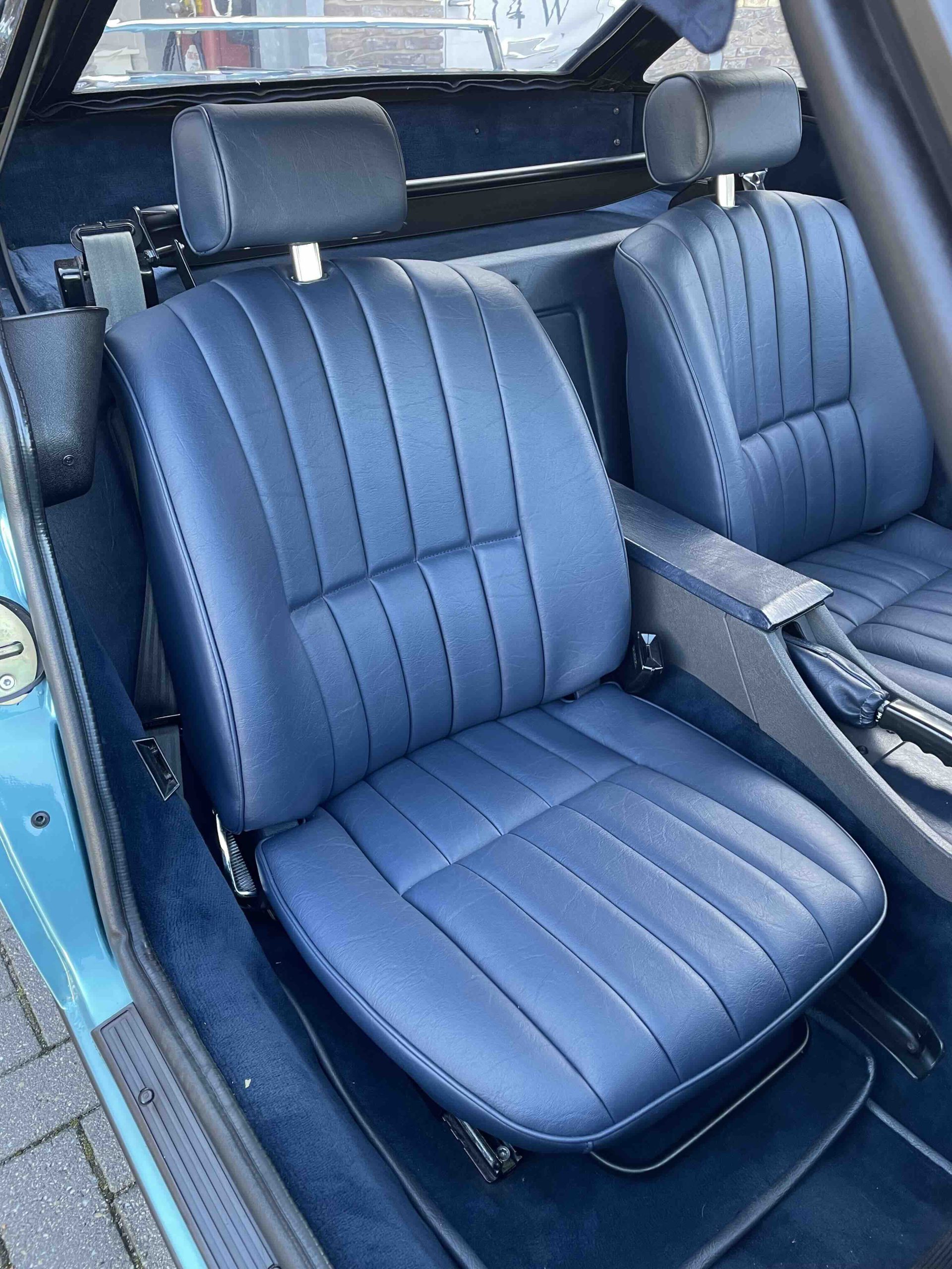 Wij mochten de beide voorstoelen voorzien van een compleet nieuw binnenwerk en nieuwe bekleding, met een klassieke look, passend bij de auto.