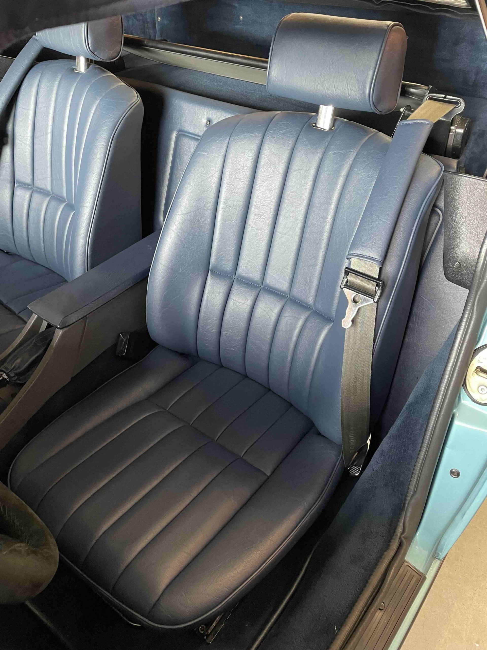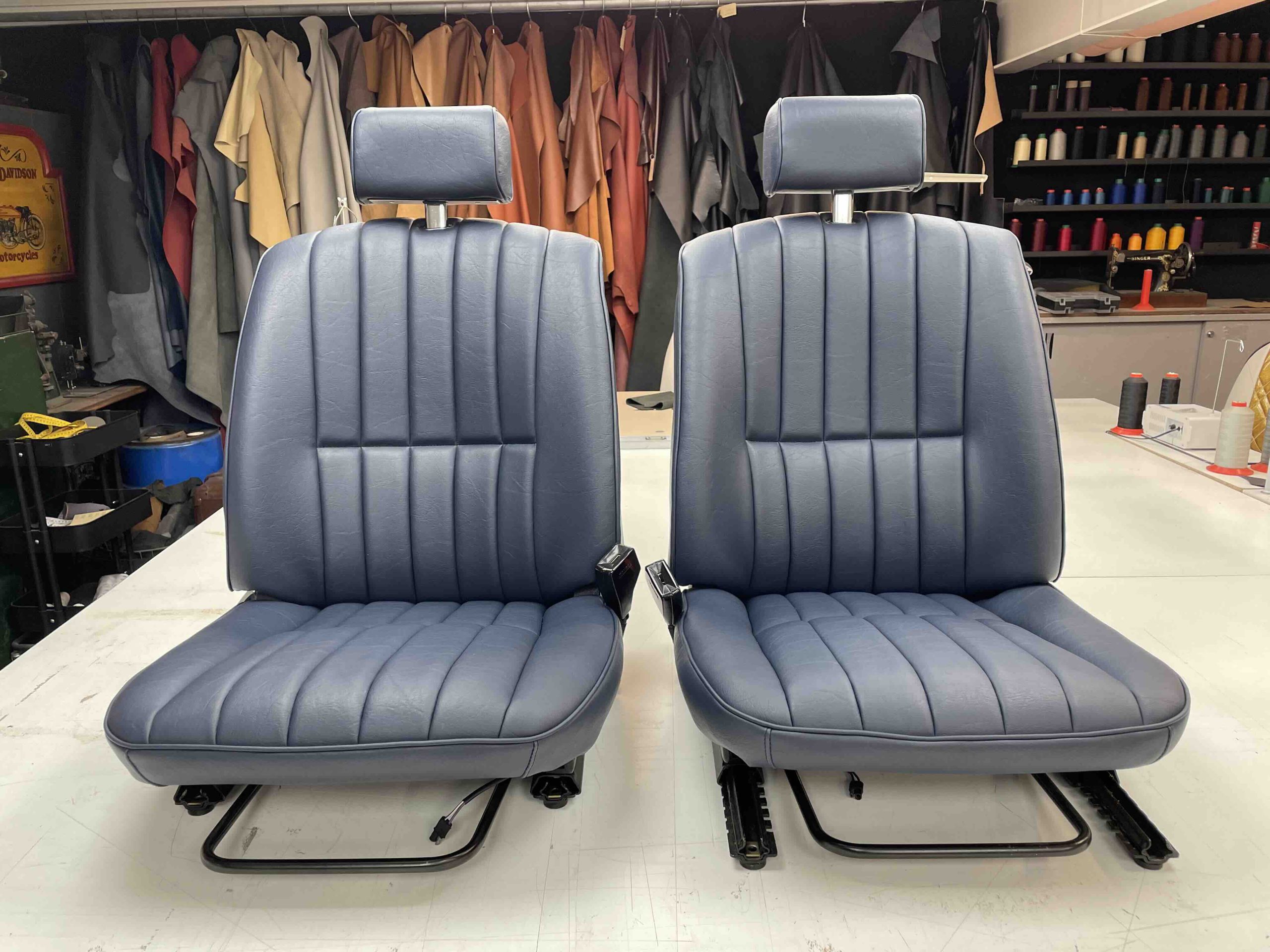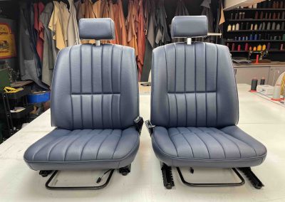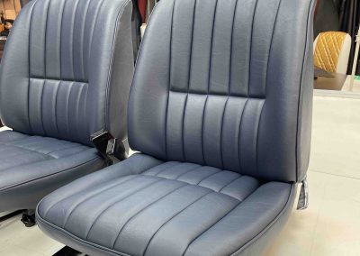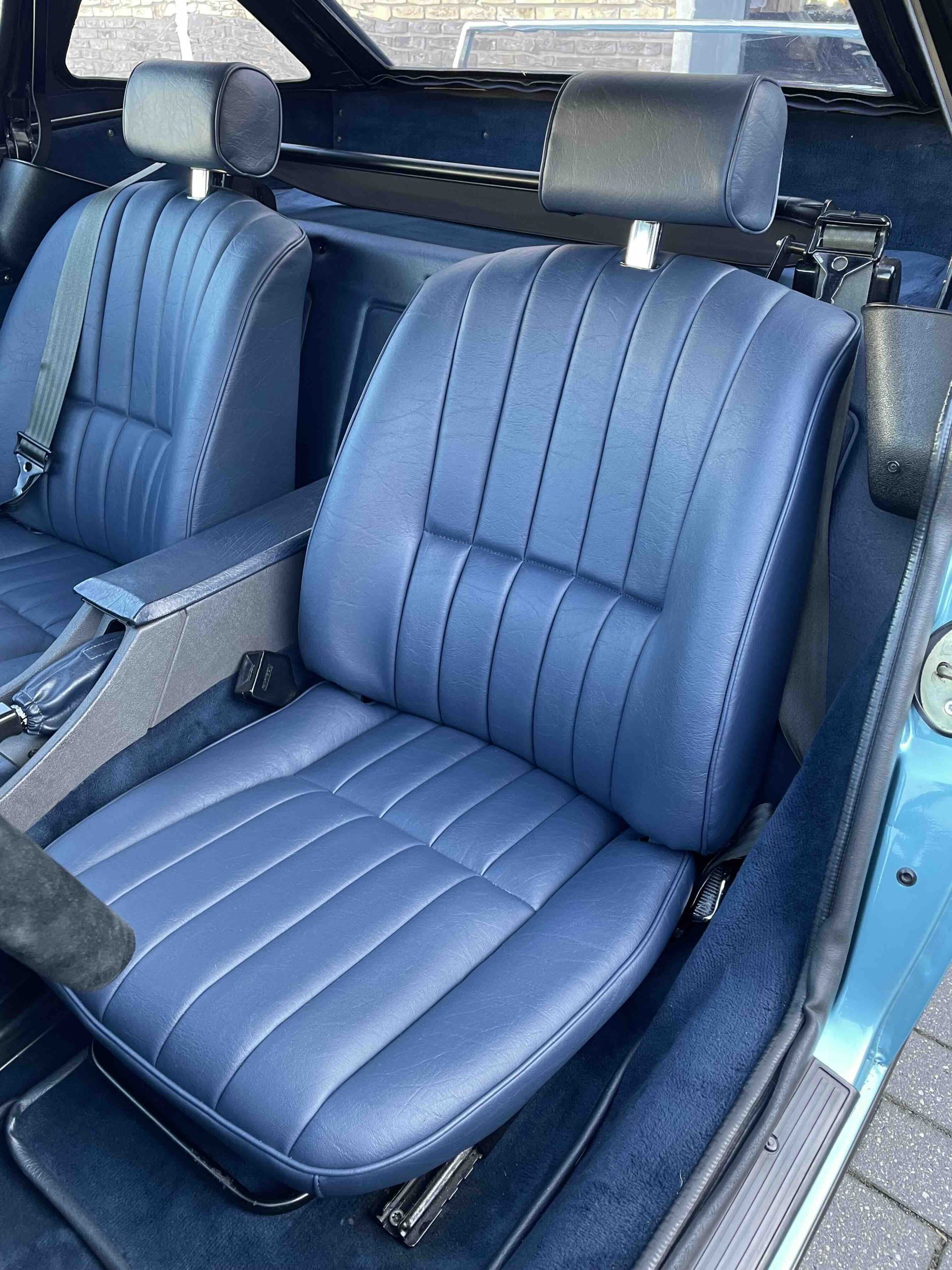 Wij mochten de beide voorstoelen voorzien van een compleet nieuw binnenwerk en nieuwe bekleding, met een klassieke look, passend bij de auto.